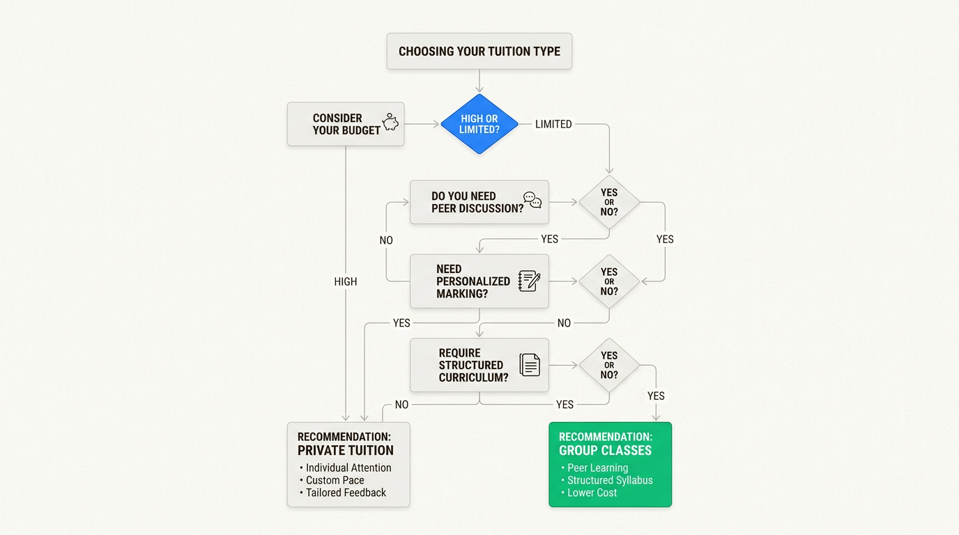 Cons: Less individual attention than private 1-to-1 tuition; fixed schedules may not suit all students