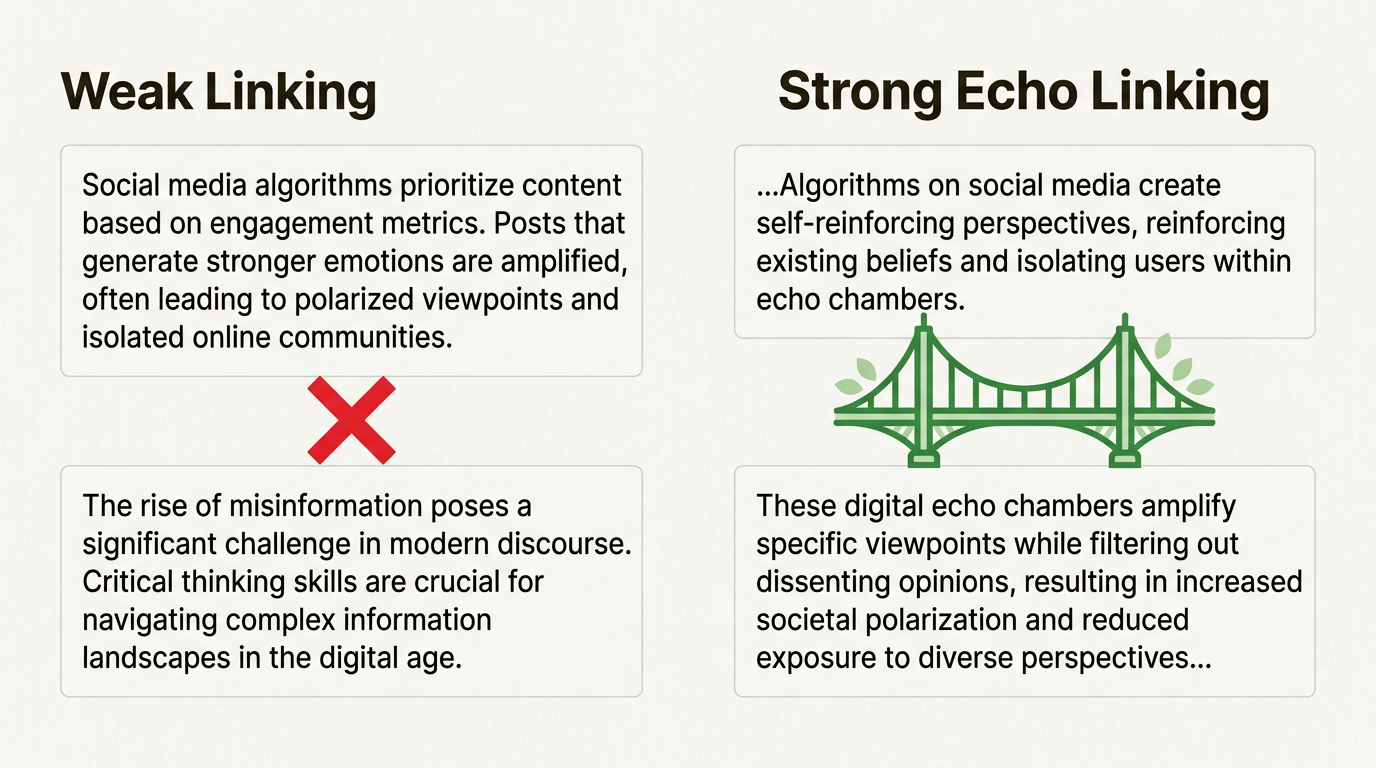 The echo of "echo chambers" creates an immediate connection. The reader knows exactly how the paragraphs relate.